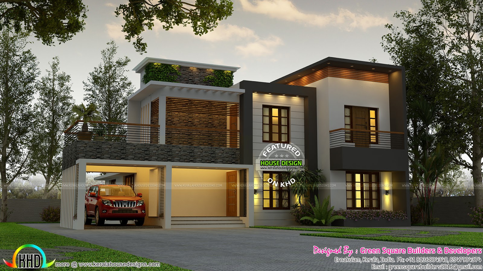 2430 Square Feet (226 Square Meter) (270 Square Yards) 4 bedroom modern flat roof house. Design provided by Green Square Builders & Developers from Perumbavoor, Ernakulam, Kerala.